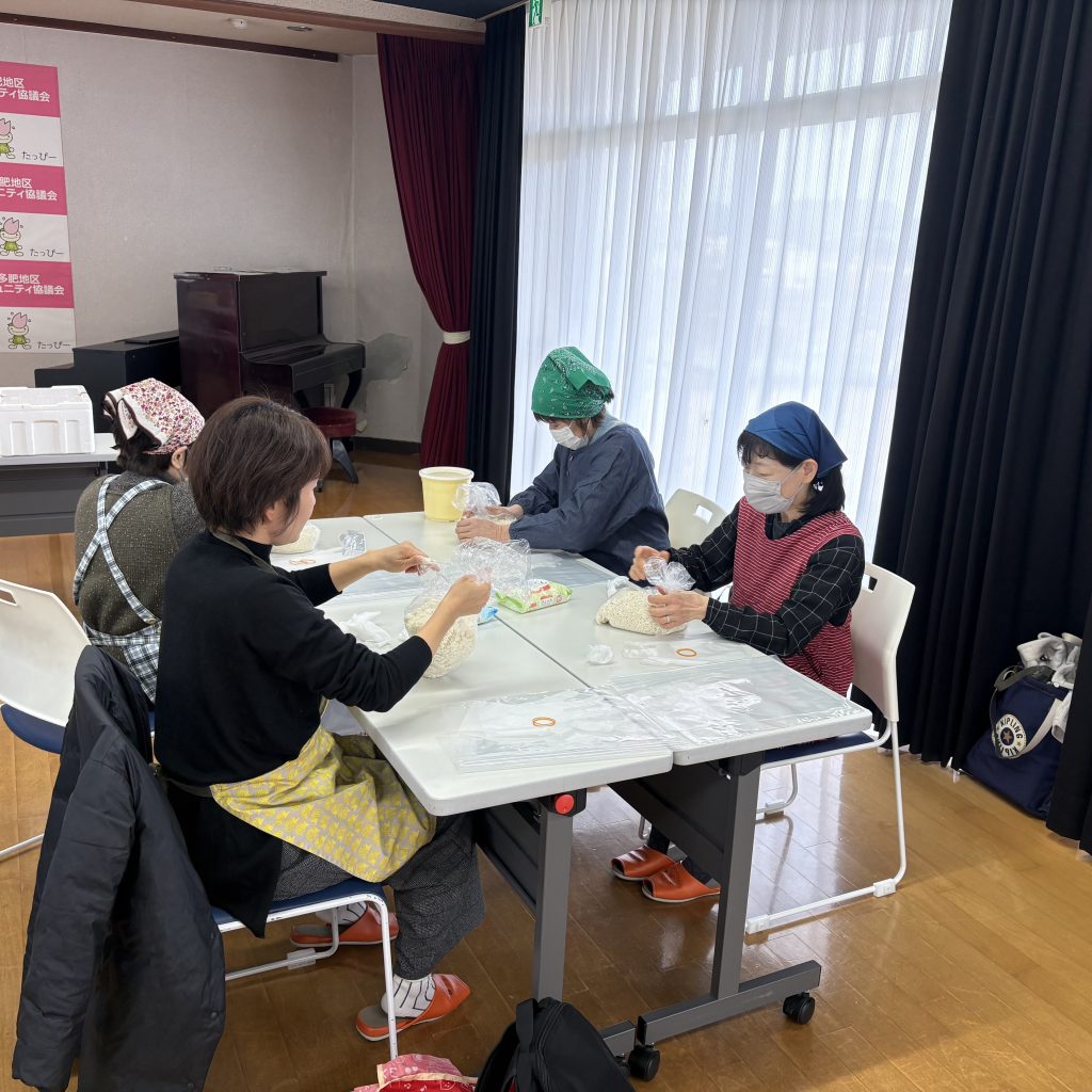 先生が4時から炊いてくれたホカホカの大豆を使って、手前味噌を作りました。