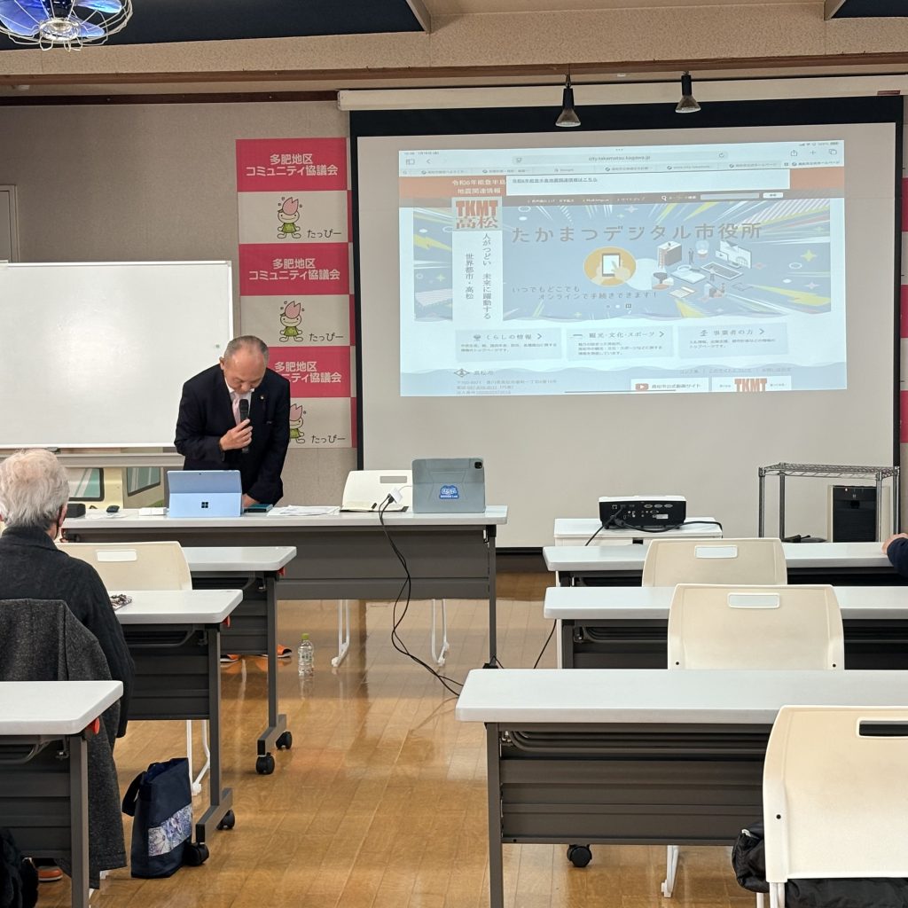橋本市議会議員に、多肥地区のことや高松市の施策について、分かりやすくお話しいただきました。