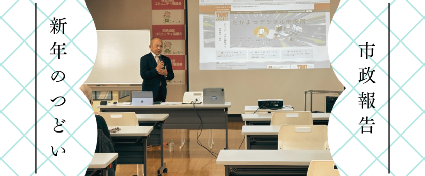 今日は、市政報告と新年のつどい。