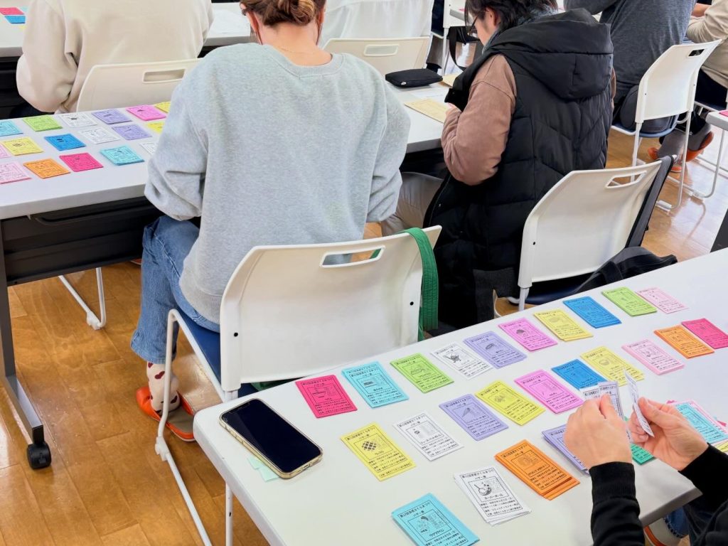 バザー部の皆さんが、小学校等のバザー前売券の券入れをしてくれました。