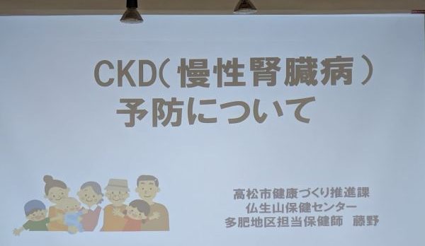 多肥地区は、慢性腎臓病の人が多いので、予防しようという話から始まりました。本日の講座は、下記のように行われました。
