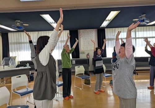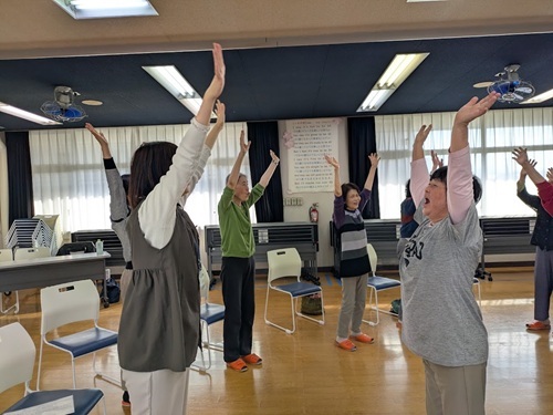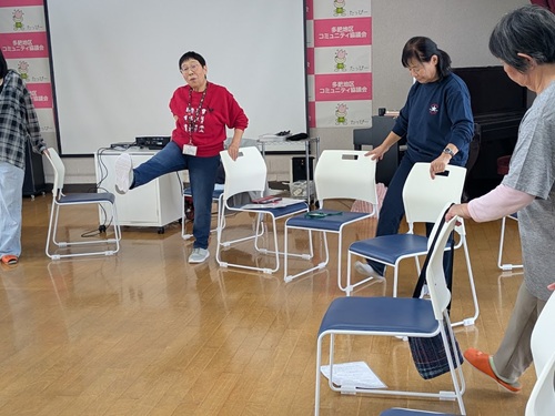 ・股関節を動かせたり、痛いところをさすりながら笑ったりするゲームをして、楽しみました。