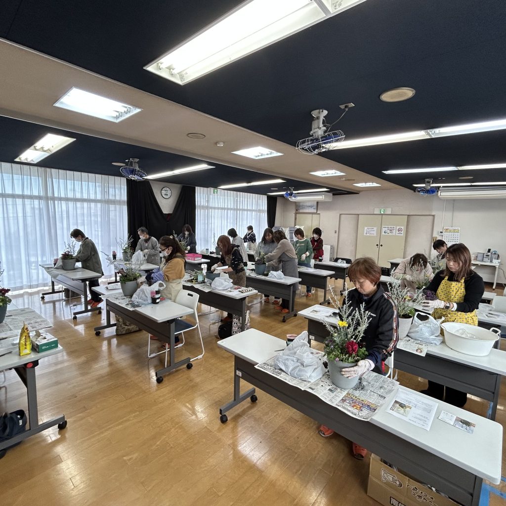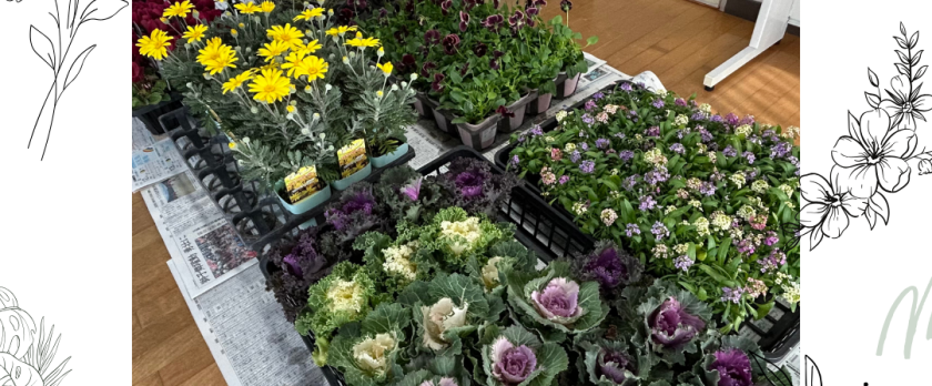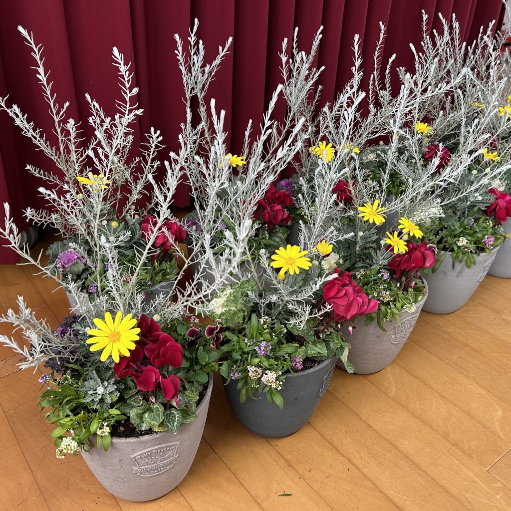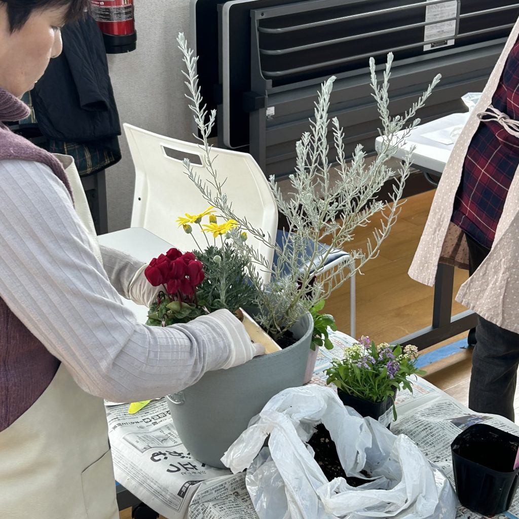 今日は「クリスマスとお正月を彩り、春まで楽しめる寄せ植え」を作りました。