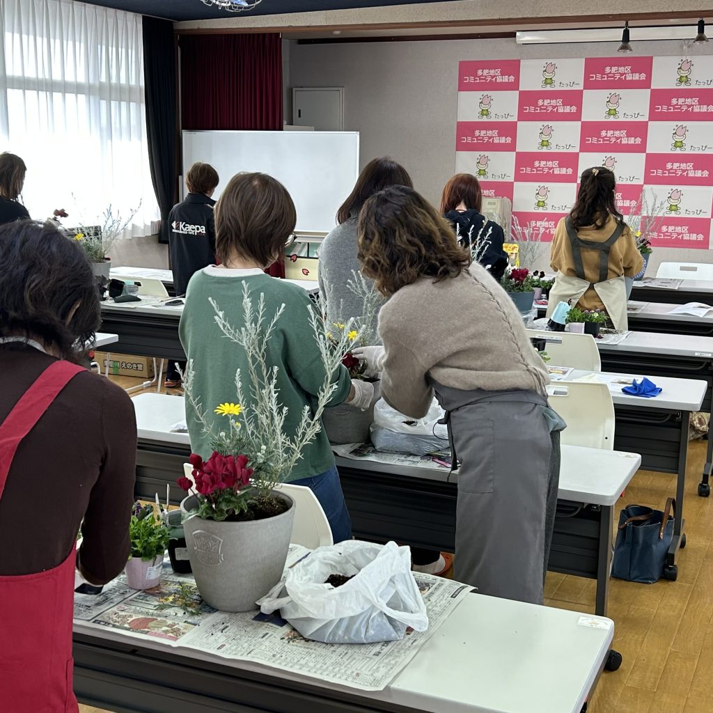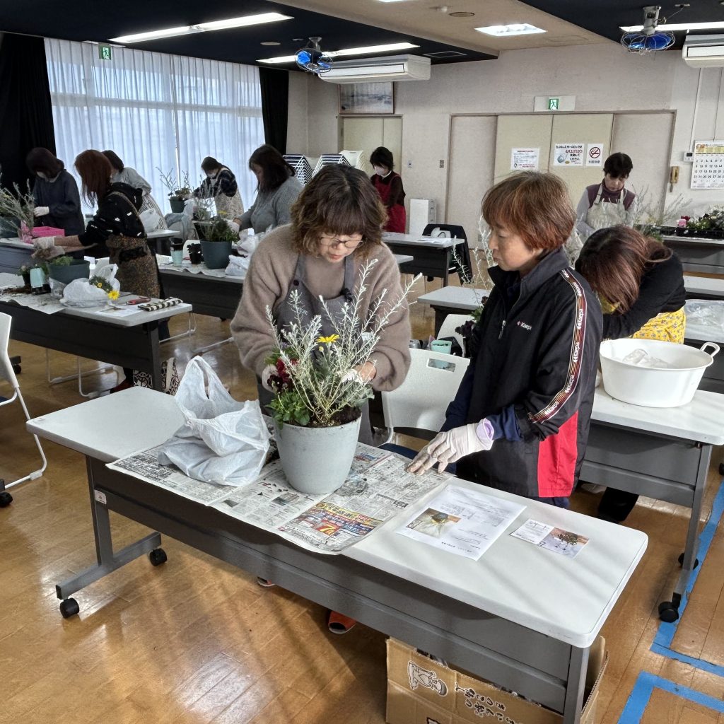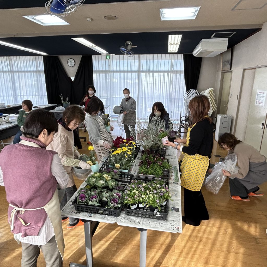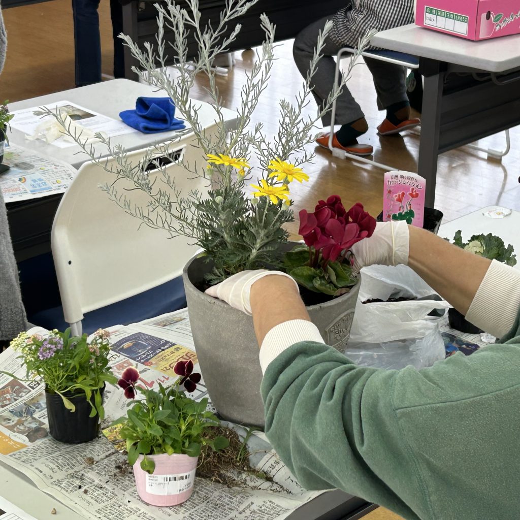 今日は「クリスマスとお正月を彩り、春まで楽しめる寄せ植え」を作りました。