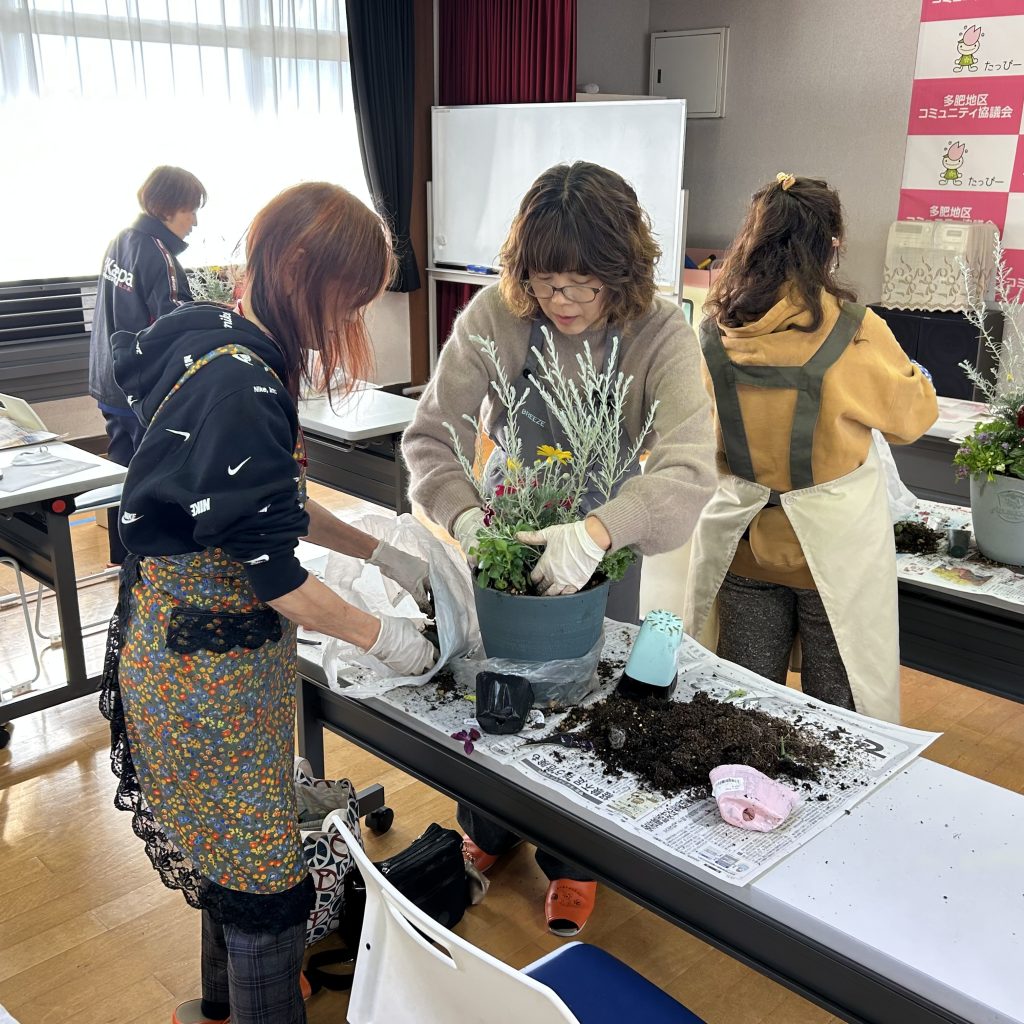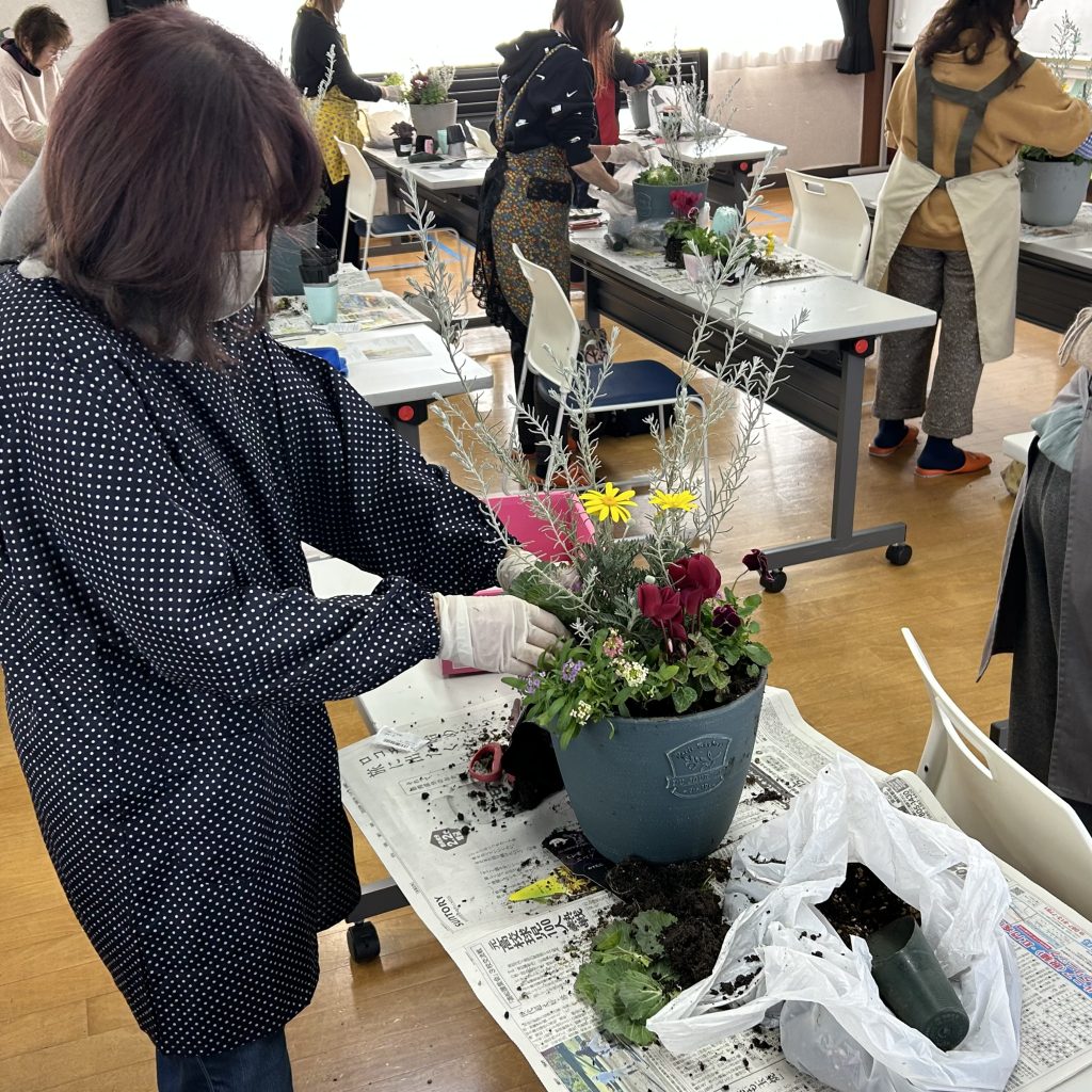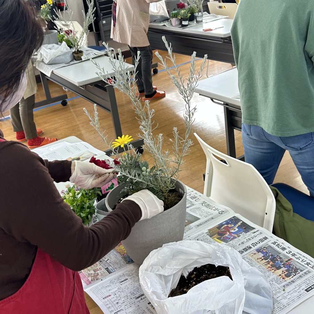 先生のアドバイスをもらいながら、向きや高さなどバランスを見ながら植えました。