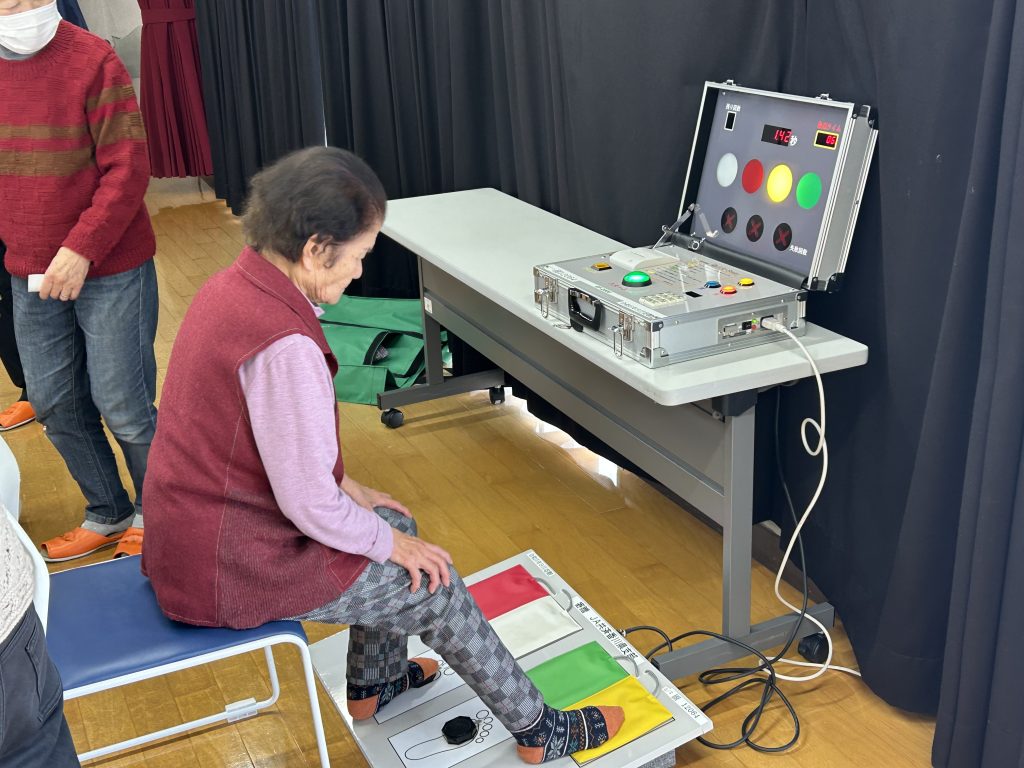 最後に、目で見て足で踏み、自分は何歳くらいの反射神経があるか、挑戦してみました。