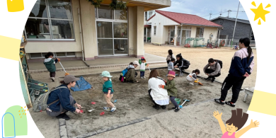 今日の「のびのびクラブ」は、保育所の園庭へ遊びに行こう!保育所のお友達と一緒に園庭で遊ばせてもらいました。三輪車で園庭…