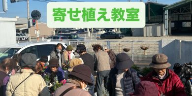 今日のにこにこサロンは、寄せ植え教室。コミセンの駐車場に机を並べて、準備開始!お花が到着すると同時に、見本を見て寄せ植えを始めました。みな…